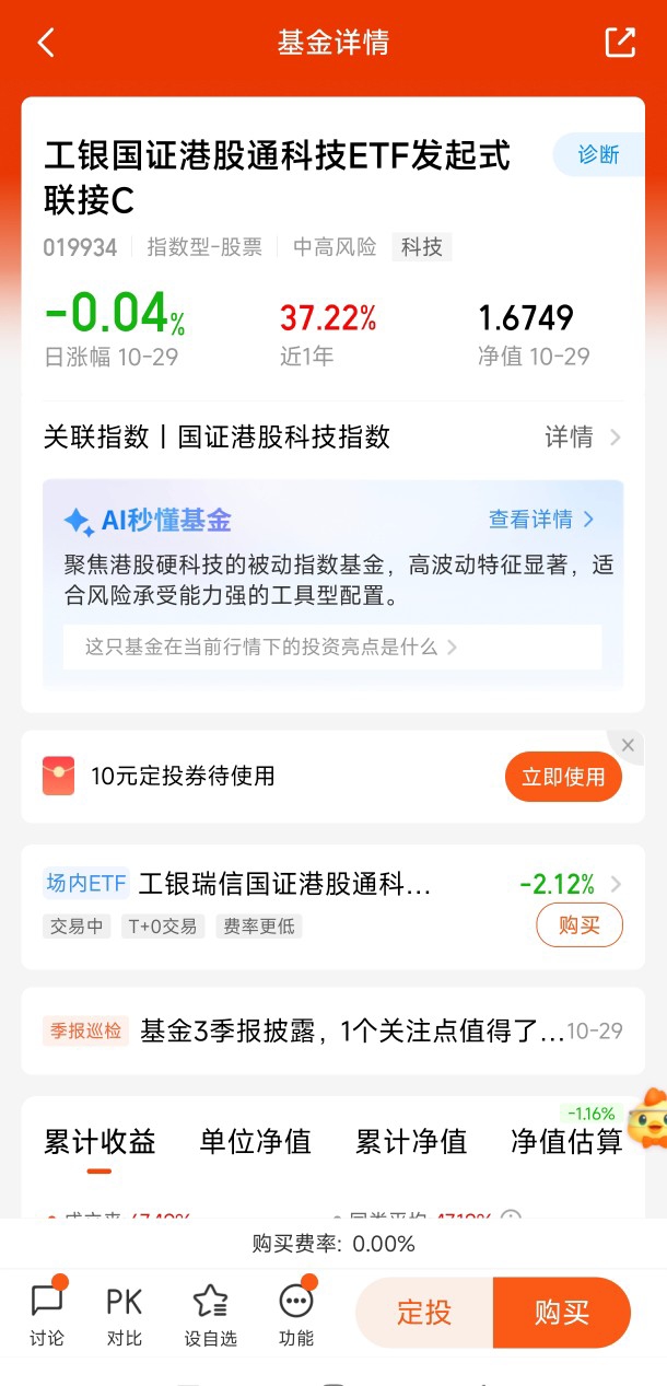 工银国证港股通科技ETF联接C(019934)的优秀,体现在四大核心优势: