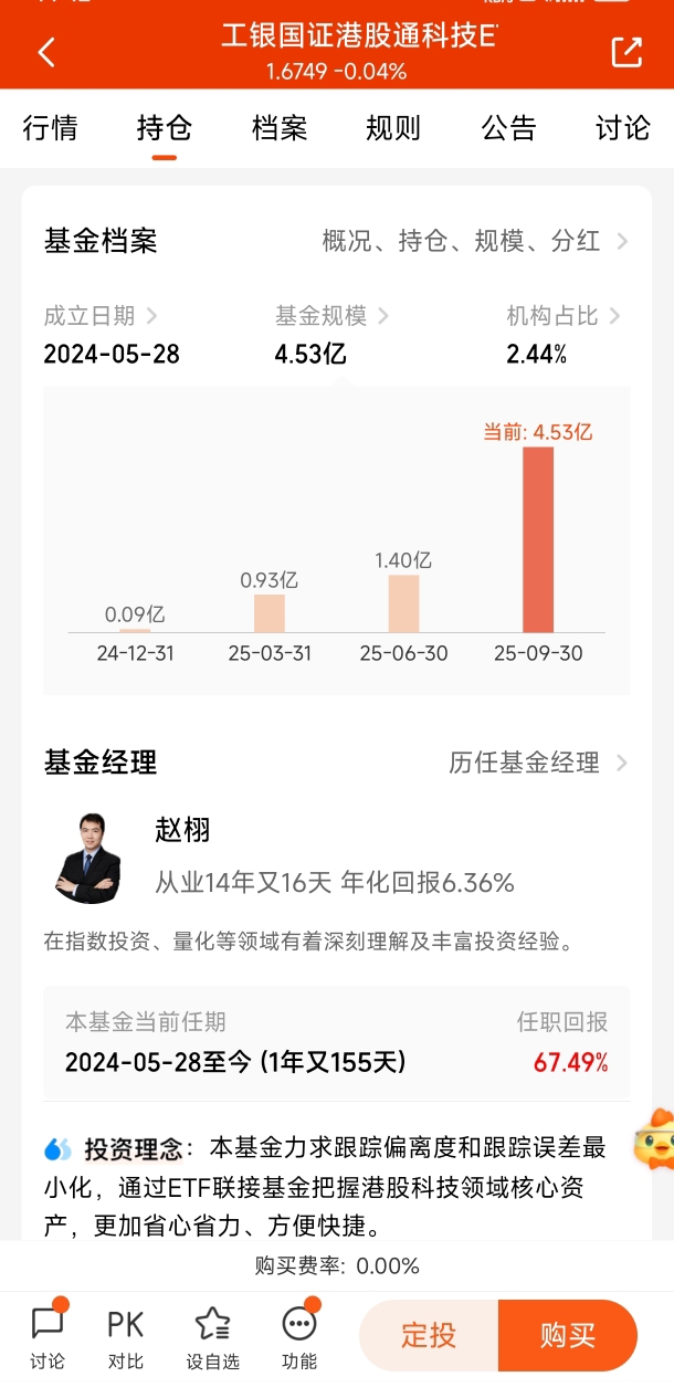 基金经理赵栩任职超12年,现任工银瑞信指数及量化投资部副总经理,管理该基金以来任职回报79.23%(截至2025年9月)。其投资风格强调“工具化+资产配置”,不追求短期排名,而是通过精细化的跟踪误差控制,确保基金紧密对标指数(年化跟踪误差通常低于0.5%)。在波动较大的港股市场,他坚持两类风控:一是流动性管理,如大额申赎时调整拆单策略;二是成分股定期评估,及时应对指数调整(如2025年3月指数删除新能源设备,新增AI与智能汽车标的)。这种“守纪律、不漂移”的风格,使基金成为值得信赖的长期配置工具。