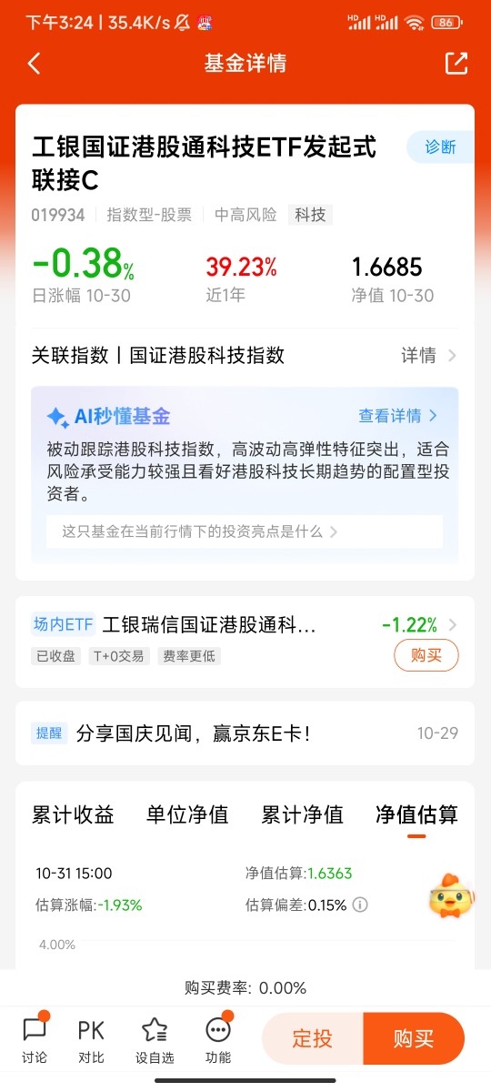 #分享国庆见闻,晒收益,瓜分好礼!# $工银国证港股通科技ETF发起式联接C$