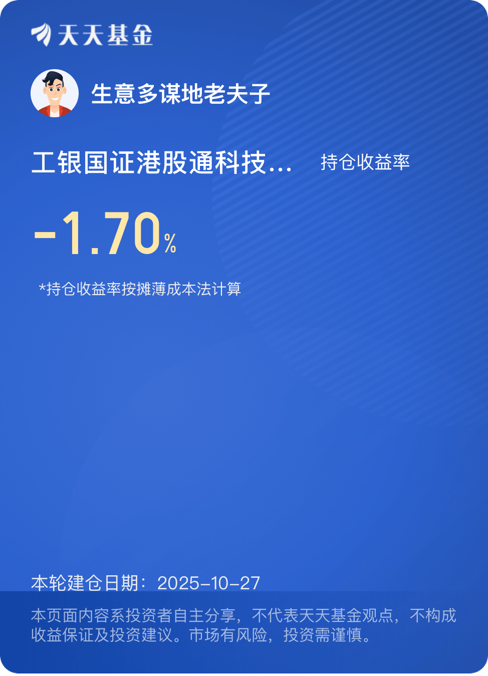 #分享国庆见闻,晒收益,瓜分好礼!# 今天港股科技低开回踩下方均线拉升,是低吸了一笔工银瑞信国证港股通科技ETF联接基金。一是美联储确认降息,全球流动性被释放,叠加政策端再度拔高科技自主战略地位,将进一步吸引资金涌入科技炒作;二是中美关税趋于缓和,全球避险情绪降温,吸引资金入市我国科技资产。此外,当前正值业绩密集披露期,在AI推动+政策端发力下,我觉得是可以期待下的。因此今天趁着调整,低吸了一些工银瑞信国证港股通科技ETF联接基金它一键打包了我国优质科技资产,聚焦AI+应用,契合当前政策发展导向!