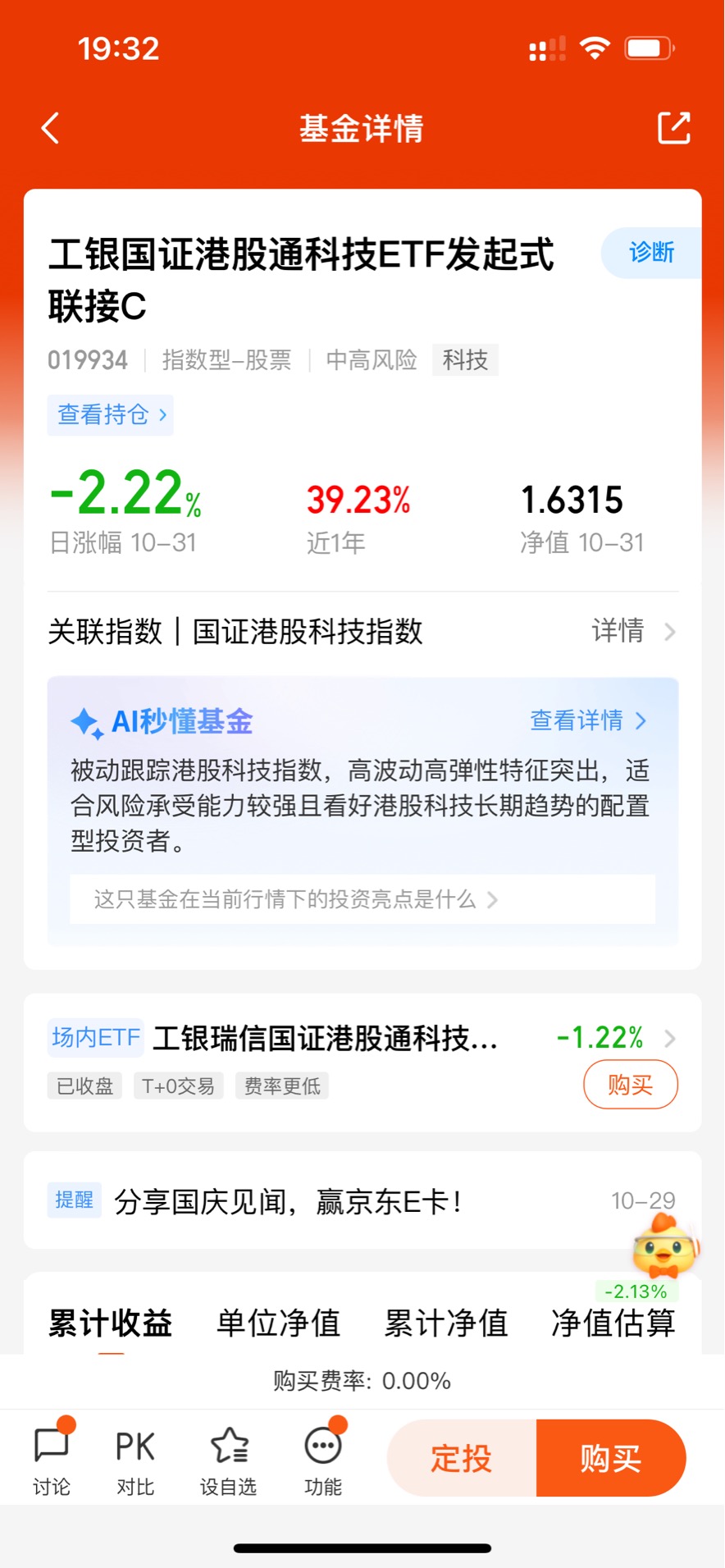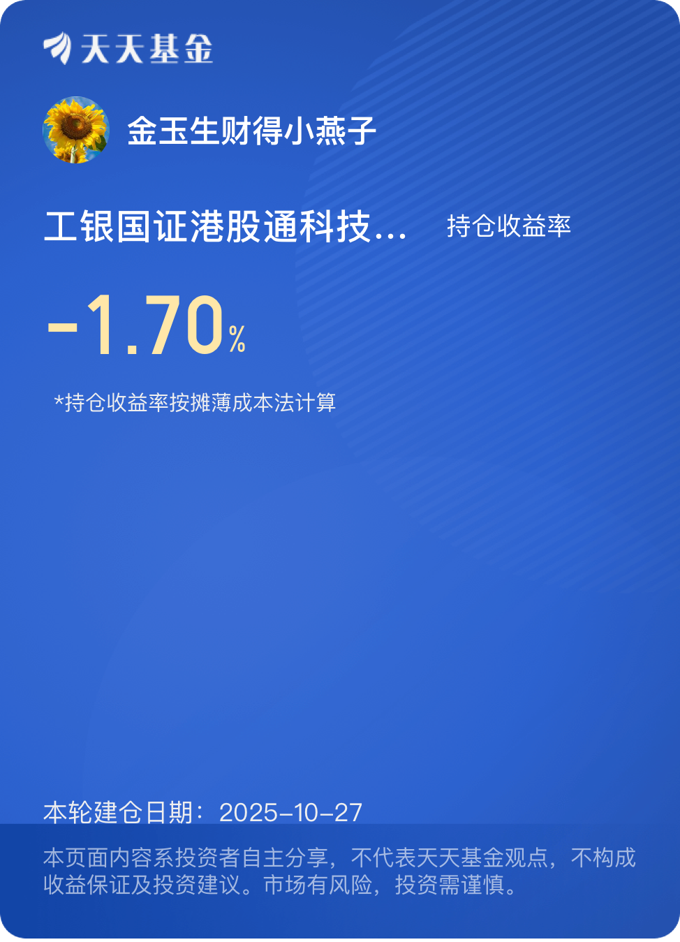 我个人还是按照之前的节奏,继续布局这一板块,买入一笔工银瑞信国证港股通科技ETF联接基金!