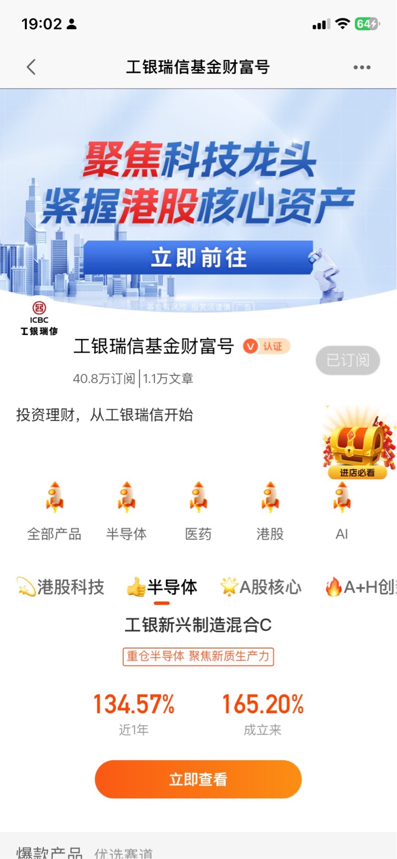 我非常信赖工银瑞信基金,长期定投、持有工银国证港股通科技ETF发起式联接C、工银聚享混合C、工银沪深300指数C、工银消费股票C、工银健康产业混合C、工银新兴制造混合C、工银可转债债券等十多只工银的基金,获得了非常好的收益回报和持有体验!将会继续定投并长期持有!@工银瑞信基金