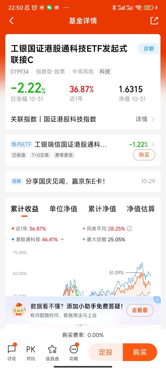 10月31日,星期五,一键布局港股科技投资机会,抓紧上车$工银国证港股通科技ET