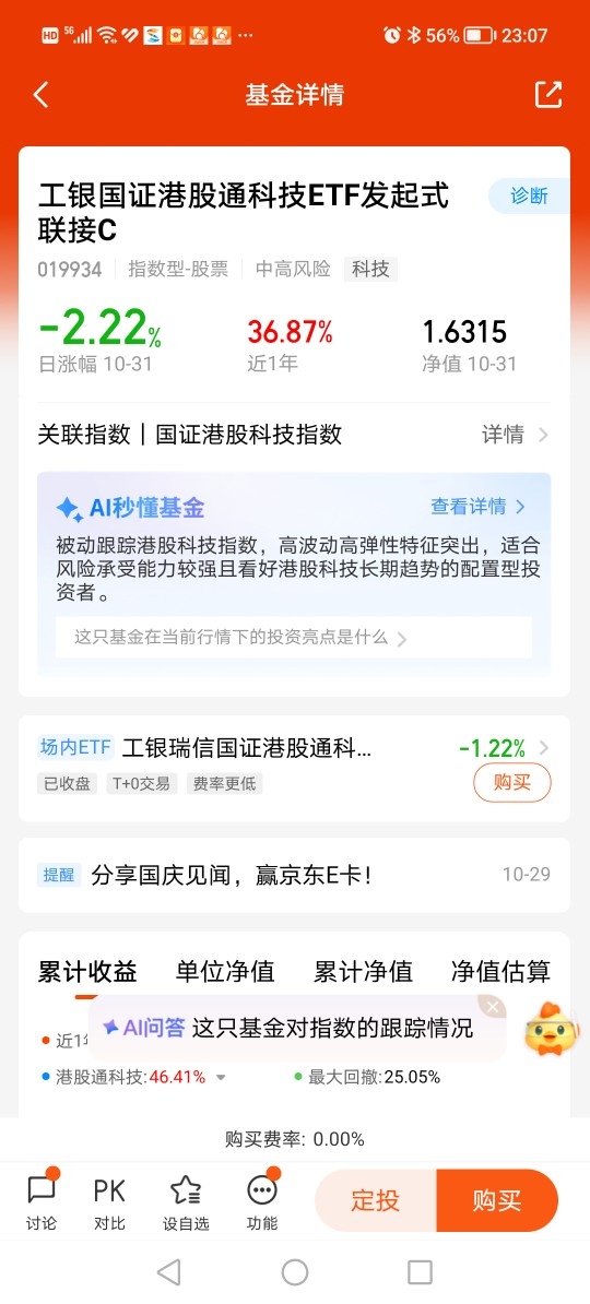 #分享国庆见闻,晒收益,瓜分好礼!# 我们知道,国证港股通指数涨超恒生科技实力原因体现在:1、龙头权重更高,弹性更强。2、行业覆盖涵盖生物科技,有助于捕获科技催化下的港股医药机会,尽管近期创新药回调较大!看好$工银国证港股通科技ETF发起式联接C$ !港股通科技指数,主要跟踪香港上市的科技企业,主要覆盖与科技主题高度相关的香港上市公司,包括网络、金融科技、云端、电子商贸及数码业务。工银瑞信国证港股通科技,重点关注港股科技,覆盖行业面广泛,尤其是港股通创新药。基金经理赵栩,具有16年证券从业经验,管理能力超强,打造量化投资策略,追求超额收益,业绩优秀。近期回调,这只港股科技基金值得关注!@工银瑞信基金