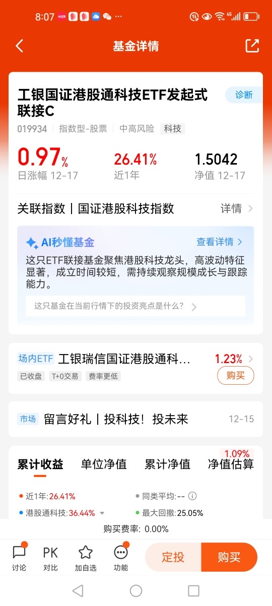 如果投资者看好中国科技长期发展,尤其是智能车、芯片、创新药、AI等产业,以国证港股通科技指数为标的的$工银国证港股通科技ETF发起式联接C(019934)$或许是一个更好的选择。@工银瑞信基金
