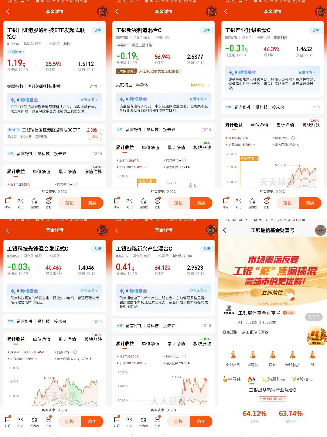 $工银战略新兴产业混合C(006616)$ 以科技产业方向为主,重点关注人工智能方向。重点配置通信、电子等战略新兴行业,契合国家产业升级方向。近1年收益率达到64.12%,非常优秀。