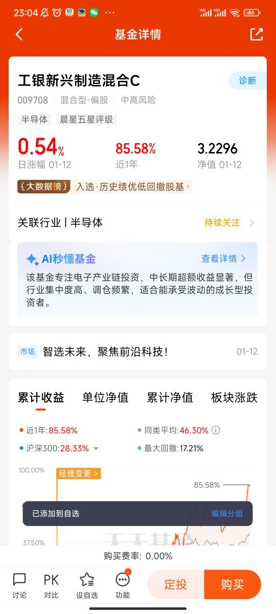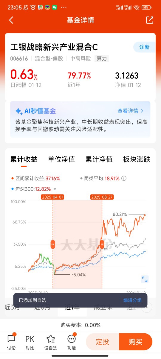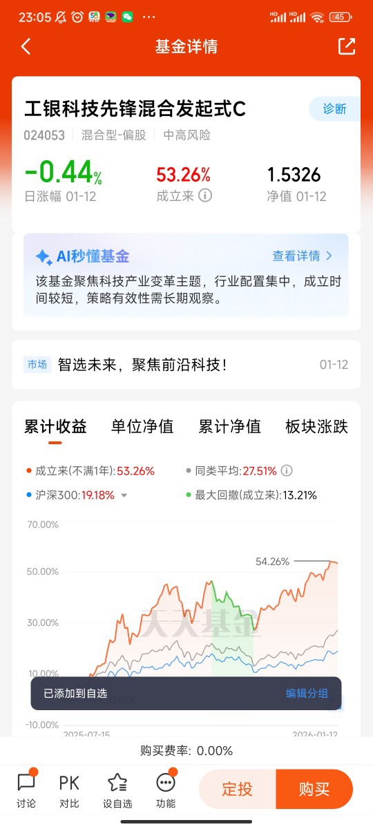 投资科技就是投资未来,在这个科技赋能万物的时代,选对赛道、选对标的,才能在时代浪潮中把握机遇。工银国证港股通科技ETF发起式联接C 就是我布局科技赛道的核心武器,接下来我会坚定持有,陪着优质科技企业一起成长。