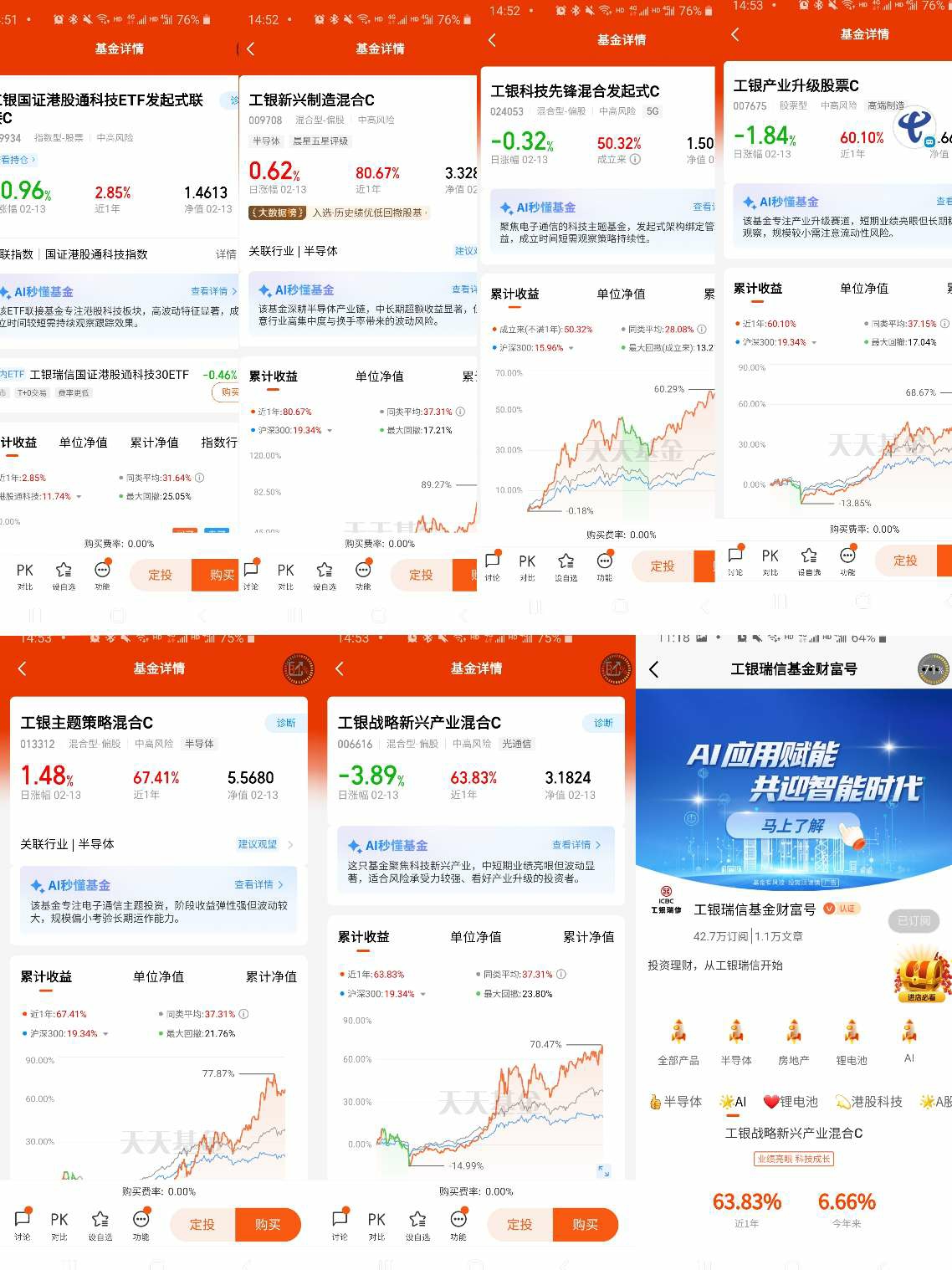 众多科技细分领域里,我期待工银国证港股通科技ETF发起式联接(019934)的表现。本基金跟踪国证港股通科技指数,成分股精选港股通标的,流动性不受QDII外汇额度限制。从指数结构上看,软硬件兼备,覆盖AI上下游全产业链,包括AI应用平台企业(阿里巴巴、腾讯控股),还有半导体芯片(中芯国际),以及智能汽车(小米集团、比亚迪等);同时补齐了恒生科技不具备的生物科技、AI医疗板块,行业分布更均衡。国证港股通科技指数经过近半年的调整,目前估值合理,具备较高的安全边际。