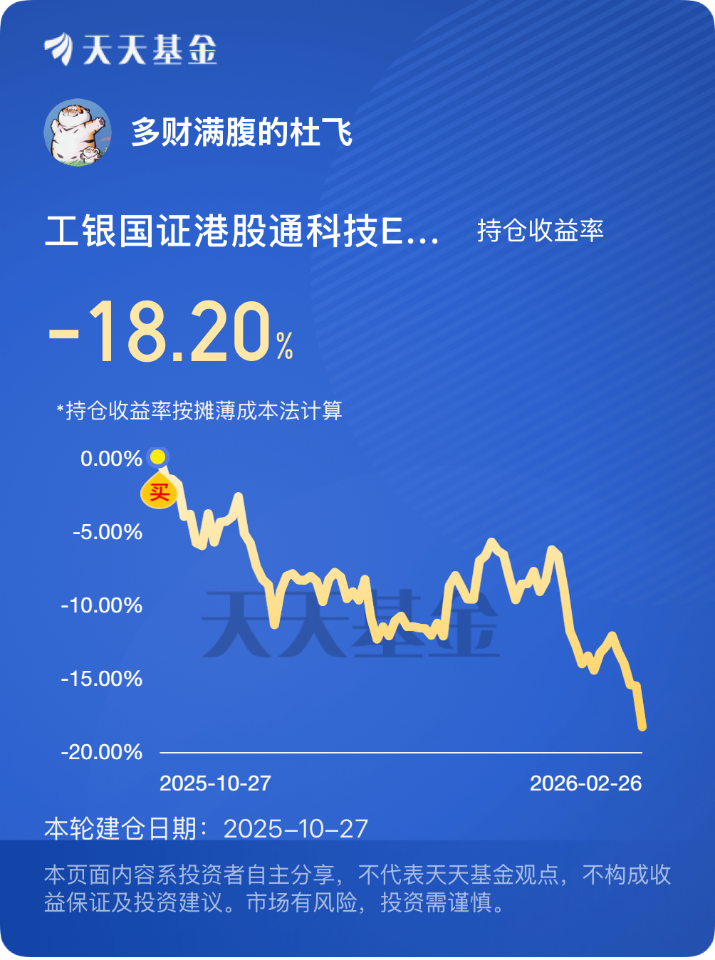 投资本质上是一场与时间的同行。港股科技当前的震荡,既是外部冲击与内部情绪共振的结果,也正在孕育着风险收益比提升的机会。当流动性冲击的预期被逐步消化,当南向资金持续用真金白银投票,当估值回落至历史低位,而产业的星辰大海仍在眼前,我们或许更需要的是在喧嚣中保持一份冷静的观察与坚定的信念。在波动的市场中,通过合适的工具和耐心的策略,与时代的核心资产共同成长,这或许才是穿越周期、收获长期回报的更优解。#晒收益#