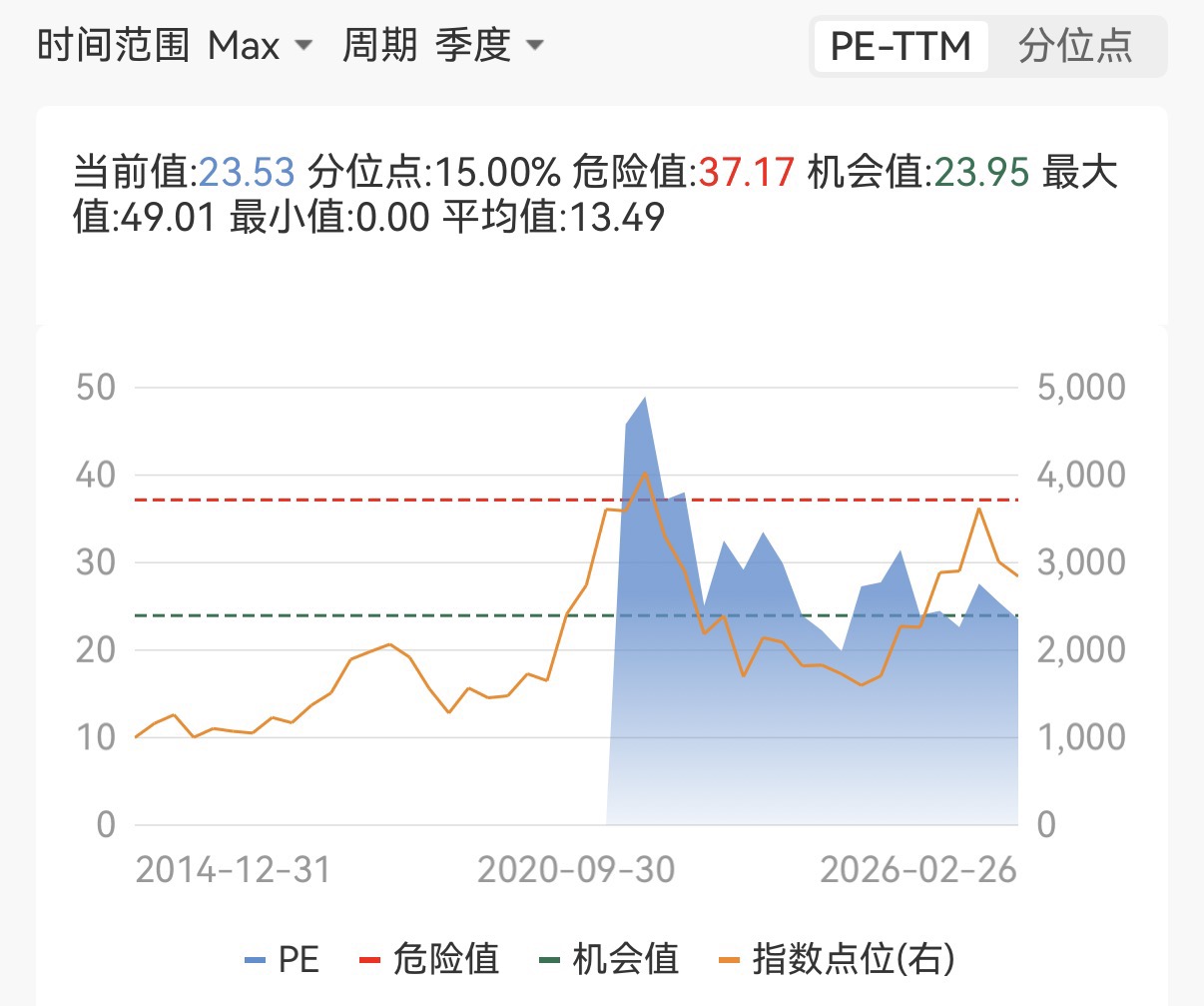 从估值角度看,市场的持续调整已经将板块水位压至了颇具吸引力的位置。以代表性的国证港股通科技指数为例,其最新都市盈率已回落至23.53倍,无论是横向比较还是纵向审视,都处于历史相对较低的区域。估值的“洼地”效应正在逐步显现,这为未来的修复提供了基础。