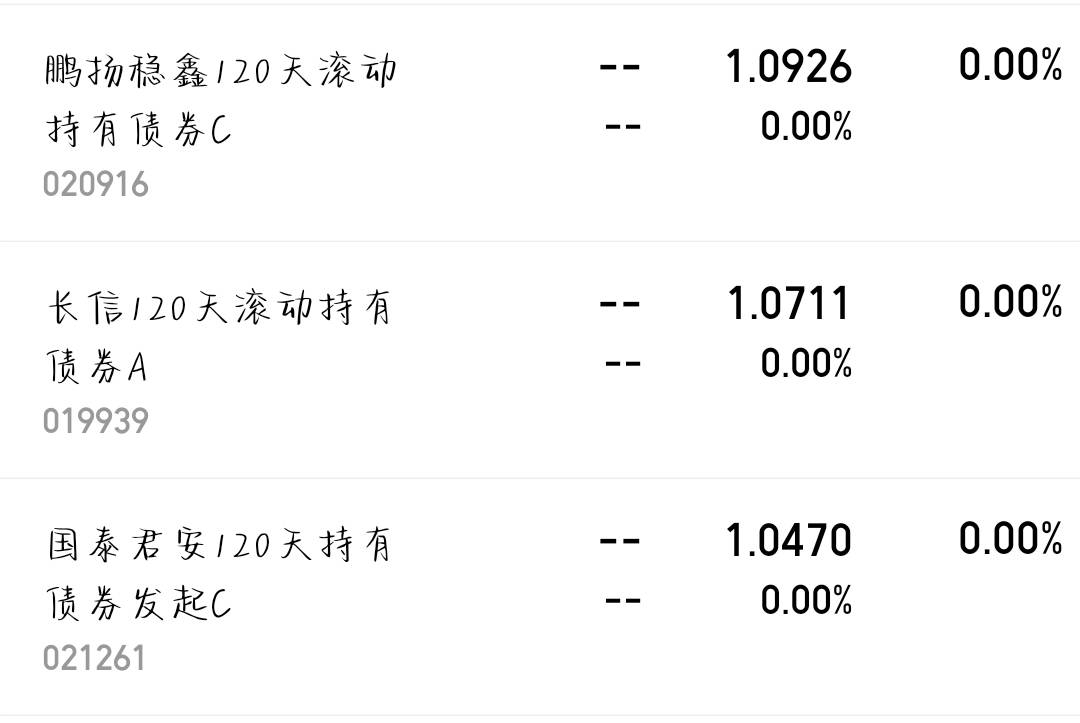 $长信120天滚动持有债券A$ 没变化