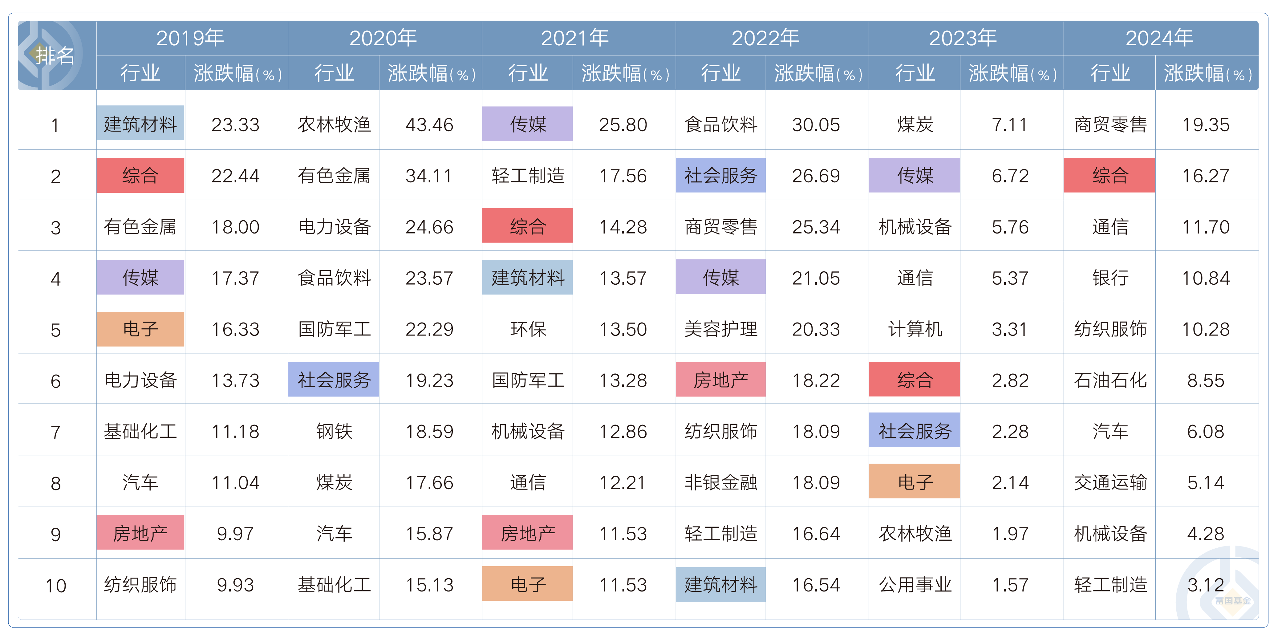 年底冲关行情怎么投?历史数据揭示惊人规律:近6年11-12月,总有行业悄然起飞,涨幅前十行业平均收益达14.66%!传媒、建材等行业凭借政策与季节性效应多次领跑,电子、通信也在科技浪潮中表现抢眼。年底冲关在即,该往哪个方向布局?客官不妨看看这些经过市场历史验证的方向,或许能帮你找到属于自己的投资节奏。(Wind,截至2024年12月31日)