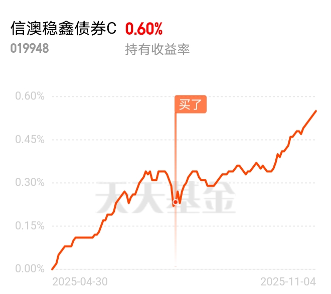 $信澳稳鑫债券C$没有只跌不涨的市场,耐心玩才是上策。债基用时间换空间等着了。