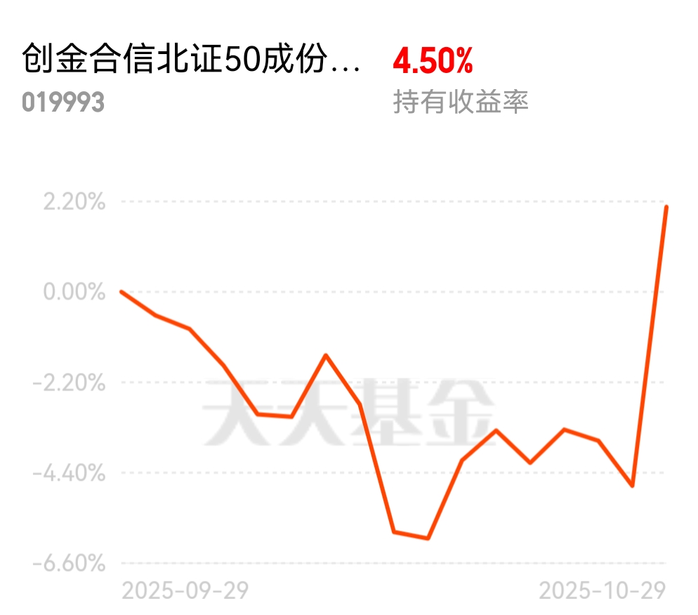 涨幅这不就起来了吗,明天继续加油$创金合信北证50成份指数增强A$