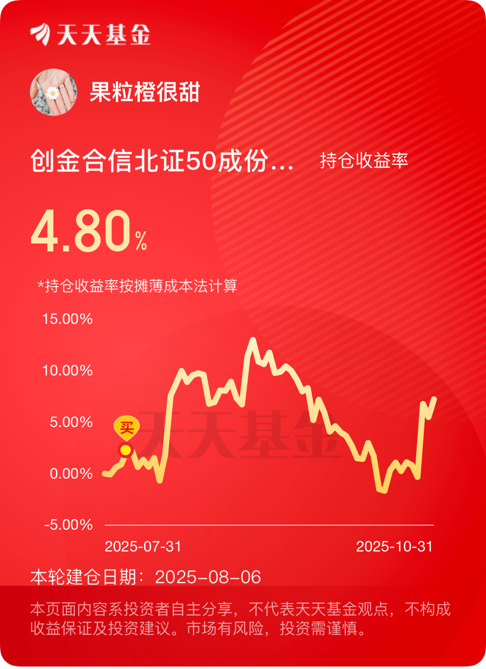 北证今天势头不错,希望能坚持都收盘吧。$创金合信北证50成份指数增强A$