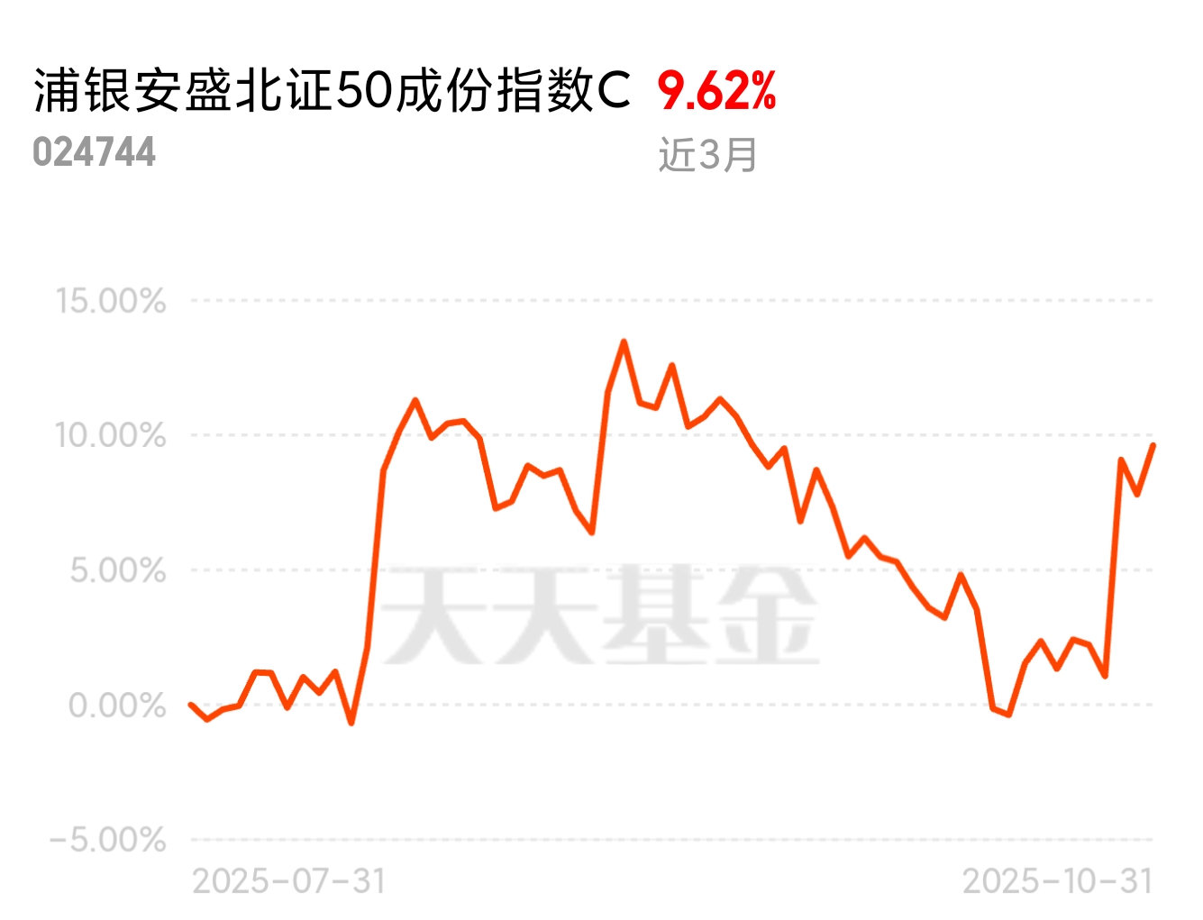 北交所出手了,受北证50ETF加快推出利好刺激,资金快速涌入,拿住浦银北证50,布局起来$浦银安盛北证50成份指数C$