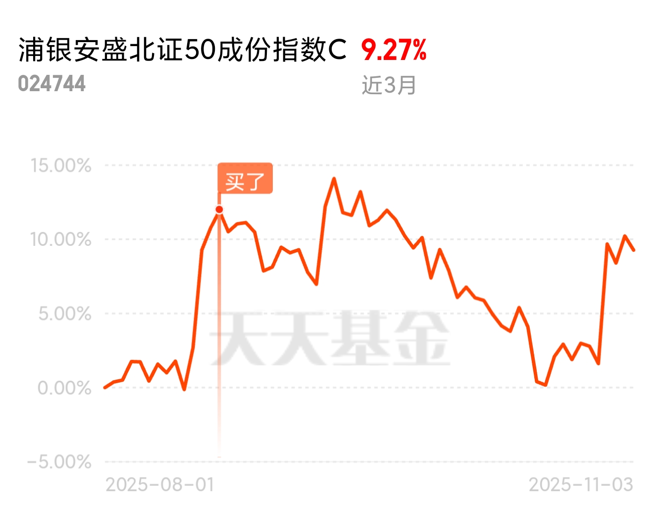 浦银北证50成立以来跑赢指数有超额,费率低不限额,7天免赎回费,值得拥有$浦银安