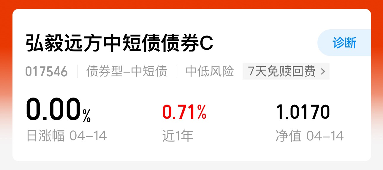 就拿我一直持有的弘毅远方中短债债券C来说,昨天收益持平,不过近一个月算下来,累计收益达到了41个蛋,这样稳健的表现,在市场里可不多见。