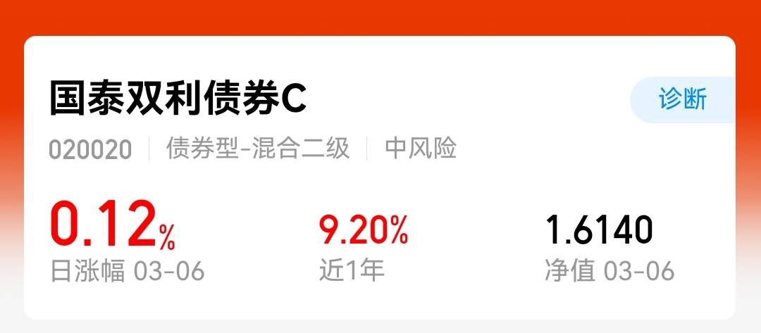 这个今天有点难了,今天看看债市开局情况,国债期货开盘,30年期主力合约跌0.44%,10年期主力合约跌0.15%,5年期主力合约跌0.10%,2年期主力合约跌0.08%。!虽然今天开局不好,但是低开高走概率大。昨天这个宝藏基国泰双利C(020020)大爆发收蛋12个,太惊喜了!今天目前看着稳住了,看下午能逆势大收蛋不!