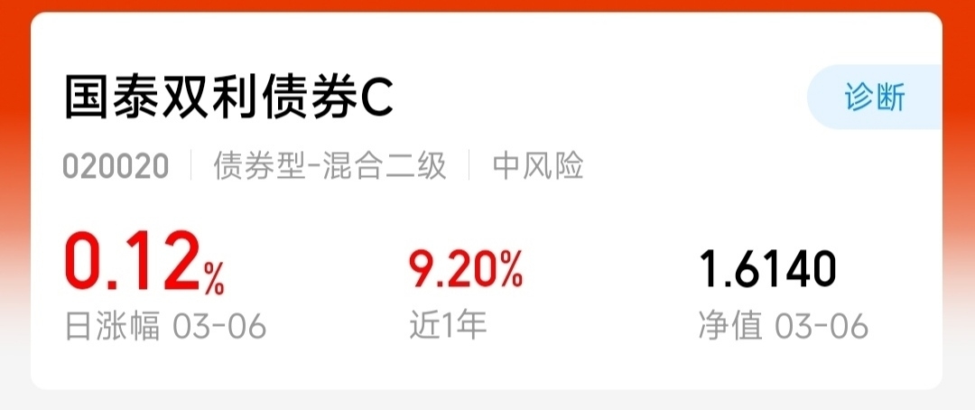 家人们谁懂啊!最近债市一波调整让人心慌慌,但聪明钱已经在悄悄捡筹码啦!今天给大家安利一只宝藏基——$国泰双利债券C$ ,不受到债市下跌的影响,接连逆市收大蛋,秒杀太多网红债了!