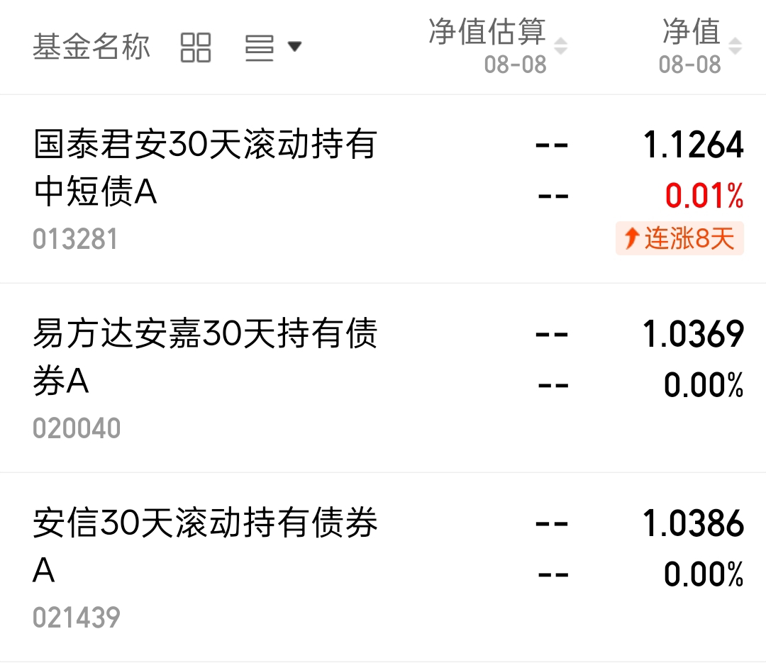 $国泰君安30天滚动持有中短债A$ 收了1个蛋