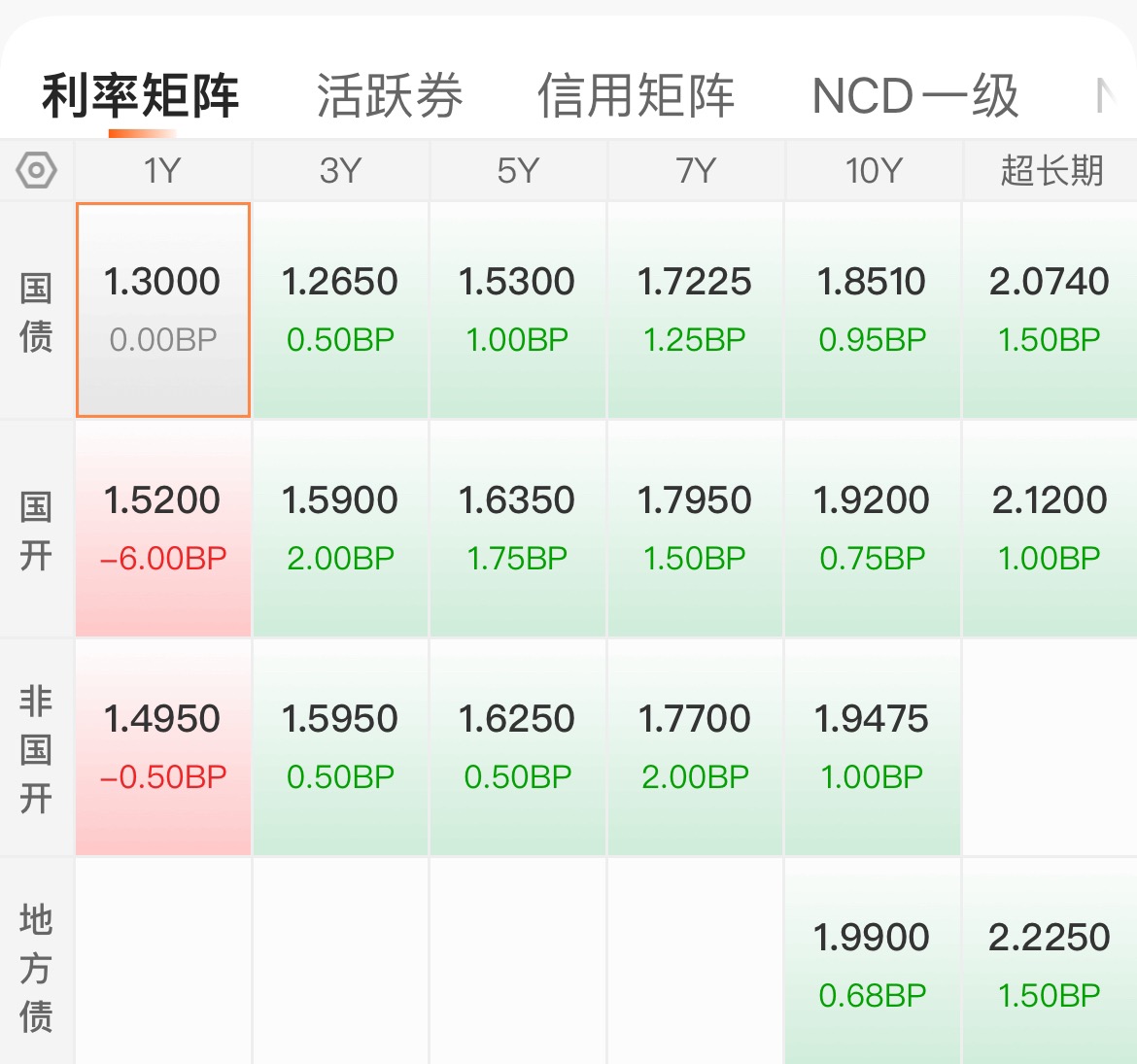 二、债市最新天气(13:00)