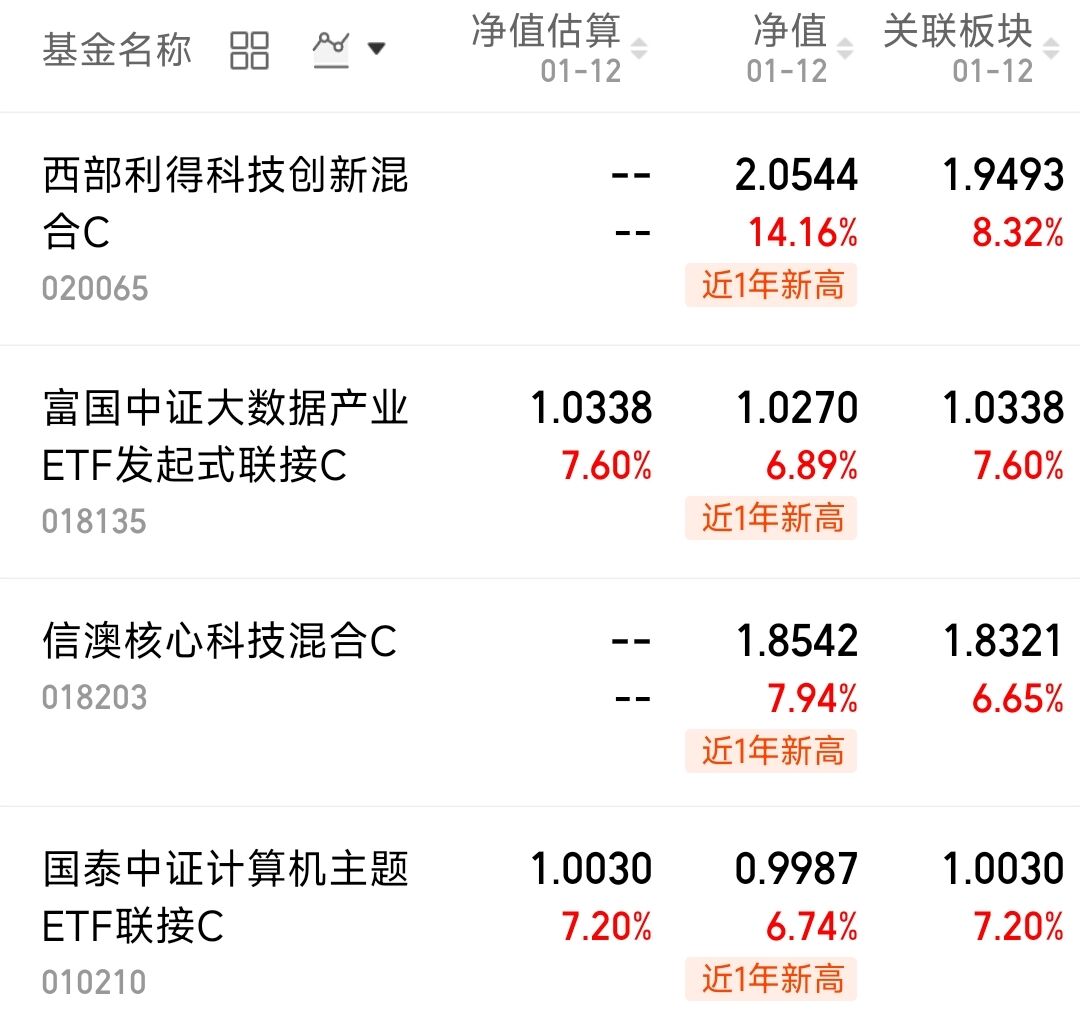 现在市场情绪已经非常膨胀,老话说 “牛市不言顶”,越是这种情绪高涨的时候,反而可能是赚钱效应最好的阶段。不用过度纠结顶部在哪,顺应市场节奏把握主线机会,西部利得科技创新上涨14.16%,$富国中证大数据产业ETF发起式联接C(OTCFUND|018135)$上涨6.89%,$信澳核心科技混合C(OTCFUND|018203)$上涨7.94%,$国泰中证计算机主题ETF联接C(OTCFUND|010210)$上涨6.74%。
