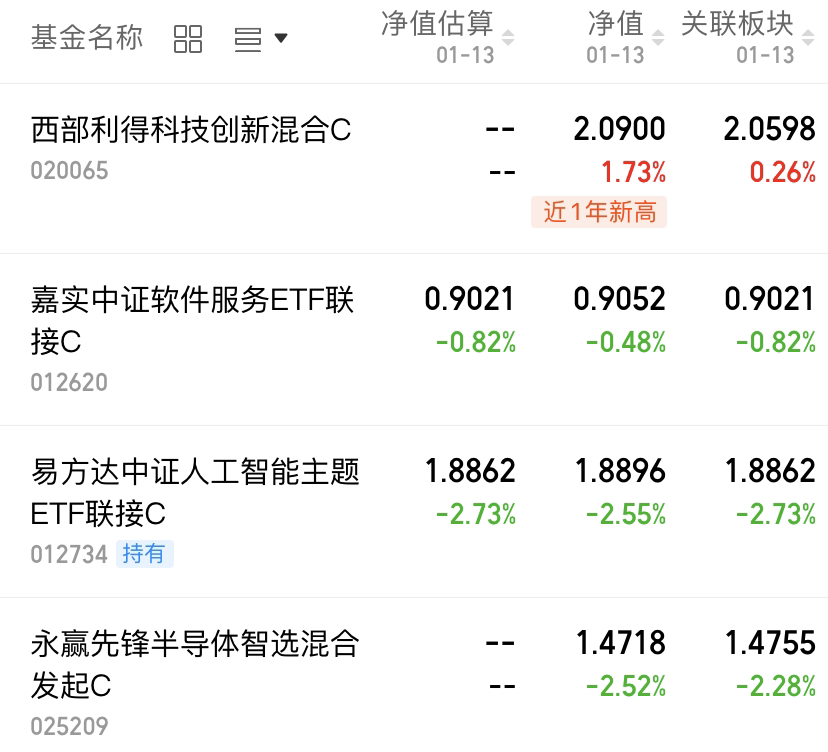 对于刚刚退潮的商业航天板块,千万别轻易去接飞刀。后续操作要重点找对节奏,把目光放在市场风格切换后的新赛道上,主打一个围绕 AI 产业链布局,$西部利得科技创新混合C(OTCFUND|020065)$上涨1.73%,$嘉实中证软件服务ETF联接C(OTCFUND|012620)$下跌0.48%,$易方达中证人工智能主题ETF联接C(OTCFUND|012734)$下跌2.55%,$永赢先锋半导体智选混合发起C(OTCFUND|025209)$下跌2.52%。