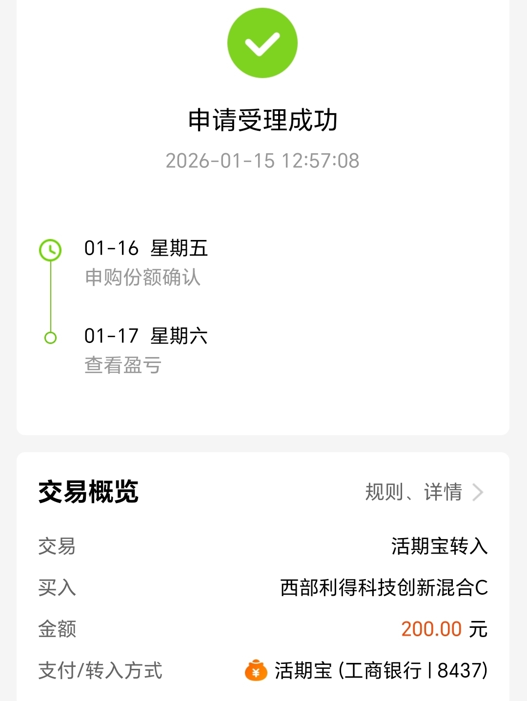 今日科技赛道倒车接人,半导体、AI应用相继调整,科创50指数回调近2%,我加仓了一点儿$西部利得科技创新混合C$ 。