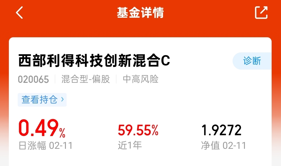 2026还是科技年!西部利得科技创新C,涨0.49%,连涨3天,近一年涨近60%。在科技创新浪潮的推动下,持仓计算机、软件、通信,相关企业成长潜力大,看好呀。