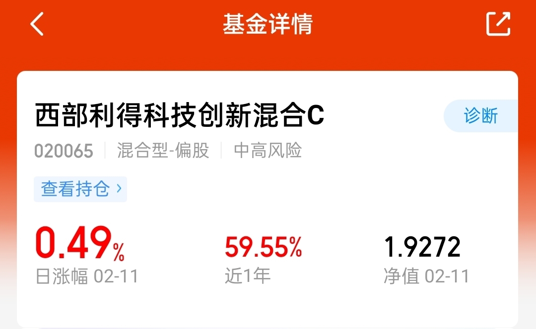 西部利得科技创新C,连续3天上涨,今天+0.49%,近一年涨幅更是逼近60%,成绩相当亮眼。在当下科技创新浪潮汹涌的大背景下,该基金精准聚焦计算机、软件、通信等前沿领域,充分把握科技机遇。