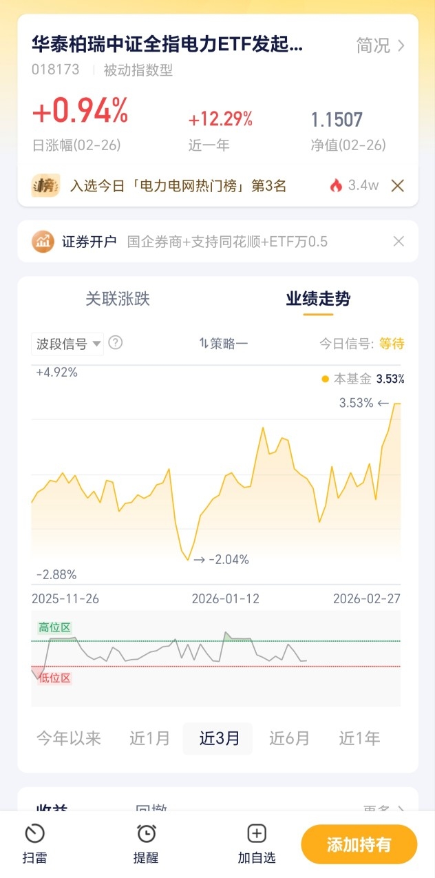 电力股今天涨得真不错,协鑫能科、甘肃能源这些票都涨停了。我看新闻说,全球数据中心用电量未来几年要翻倍增长,AI数据中心更是用电大户。这电力需求上来了,电力公司业绩应该不会差。我比较看好华泰柏瑞的电力基金,它跟踪的是电力指数,把火电、水电、风电、核电、光伏都涵盖了。现在买电力股,单买一只风险太大,万一踩雷就麻烦了。这种基金分散投资,风险小一些,而且管理费也不高,才0.5%。