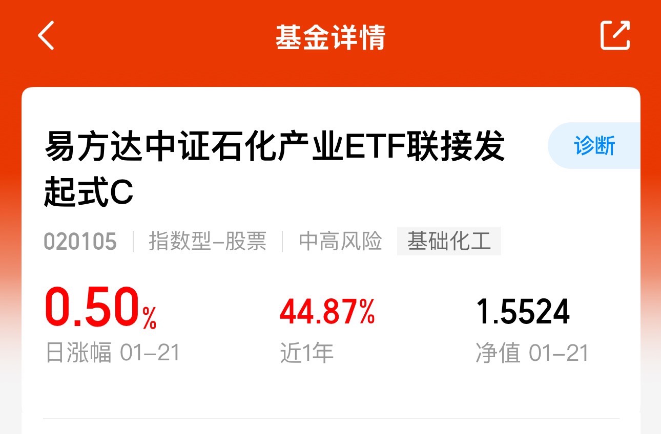 今天市场冲高回落有点磨人,不过午盘三大指数好歹还飘着红!板块分化有点大,玻璃纤维、大飞机这些涨得猛,先进封装、半导体设备却在跌。但我早盯上$易方达中证石化产业ETF联接发起式C$ ,石油天然气正领涨,这只基能同时抓住三桶油和细分化工的机会,妥妥的风口