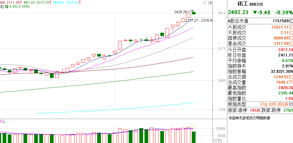 今天市场又降温了,这一次银行、保险、证券一起涨还是被超级主力压下来,说明不能炒题材,必须从业绩出发,所以资源涨价题材今天就涨得不错,当然最强是有色金属。但在有色金属面前,今天石油、化工两个方向都启动了,顺周期行情大旗或许已经开启,这或许是对抗题材炒作,以业驱动+低估值为核心的主线机会出现。