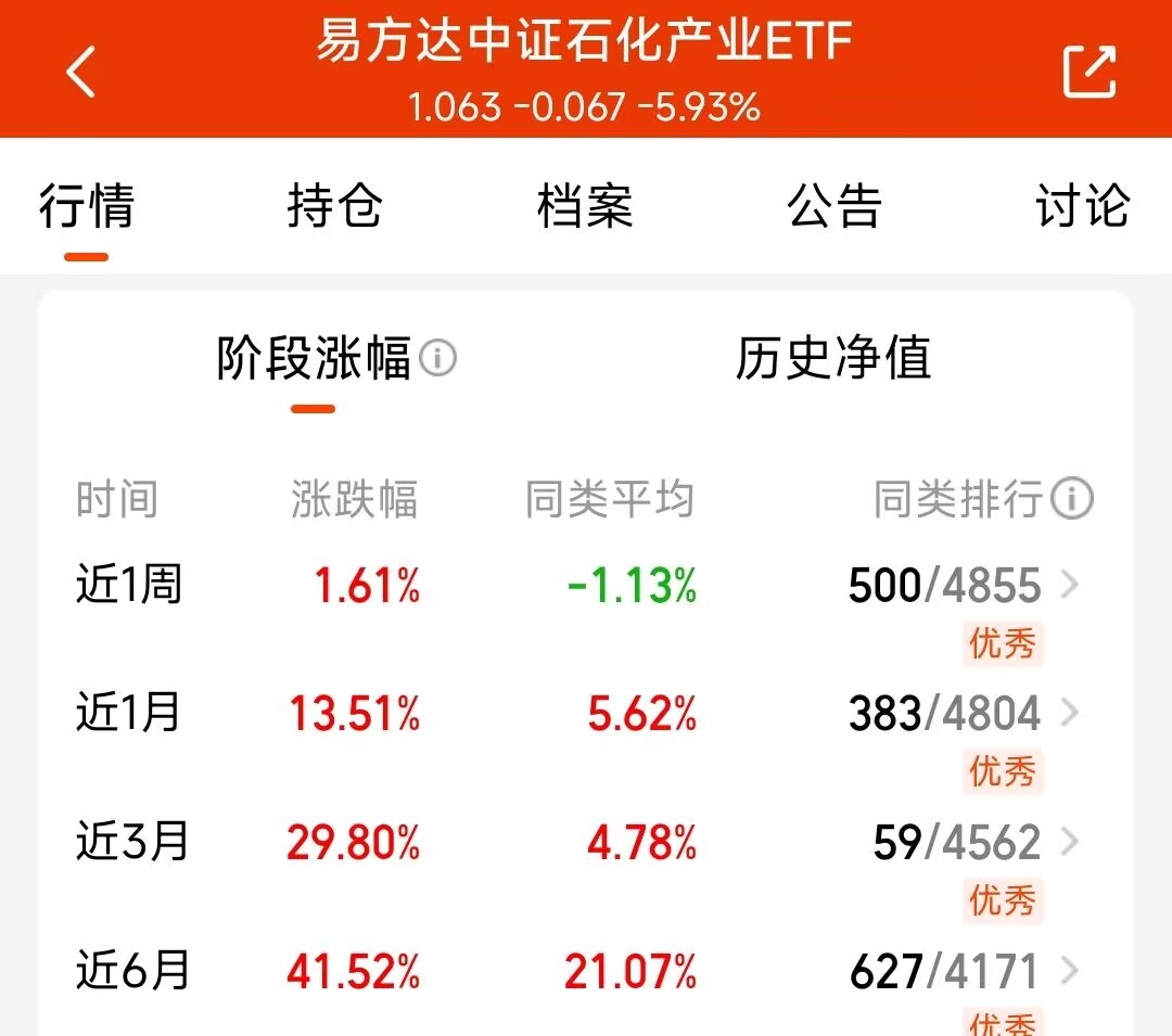 资金节前观望情绪拉满,一边电网设备板块逆势掀涨停潮,近10股封板,白酒、AI应用、影视院线也走出独立行情,反观贵金属板块惨遭跌停潮。看好易方达化工行业 C,费率低且打包三桶油 + 细分化工,能全面捕捉化工机会,近一年同类排名第一,今日回落,计划择机加仓。