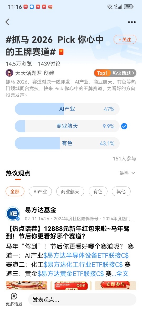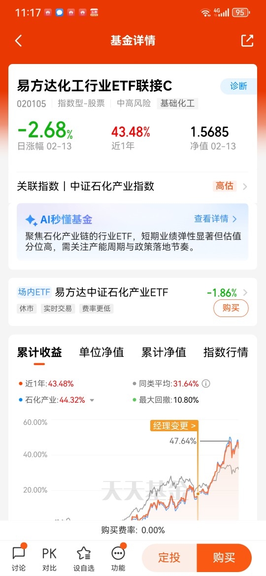 我看好化工,本人从事的职业是化工公司的供应商,进入2026年以来,化工行业公司的需求订单明显比2025年同期增长很多。可见2026年化工企业的业务量要明显好过2025年,这为2026年开了个好头,如果按照这种趋势发展下去,化工行业明显会率先好转起来,所以2026年我看好化工。$易方达化工行业ETF联接C$ @易方达基金