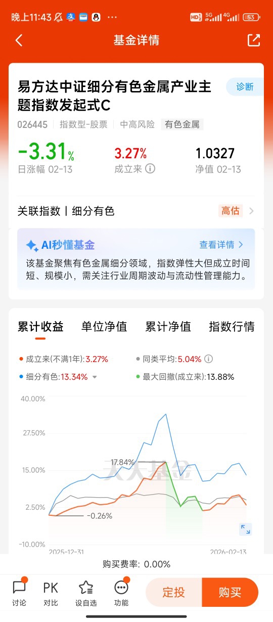 2. C类份额:适合波段操作,成本极低你关注的 易方达化工行业ETF联接C (代码020105)是C类份额。其最大特点是无申购费,且持有满7天免赎回费(仅收取按日计提的销售服务费)。在行业处于震荡上行期时,C类份额非常适合进行短期波段操作,进出灵活,交易成本极低。