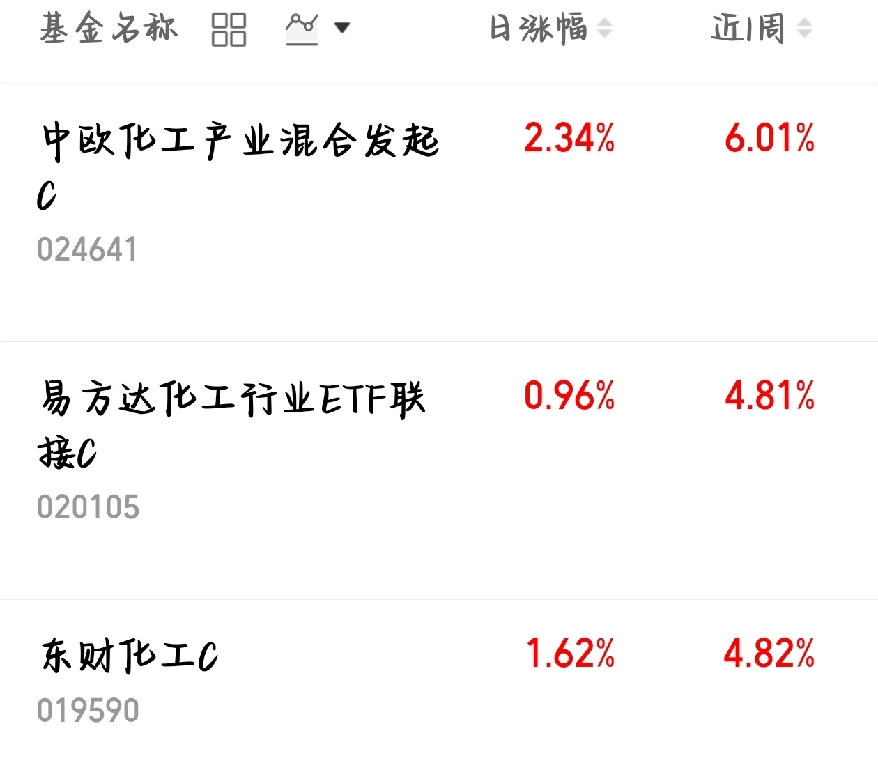 最近化工板块行情火热,中欧化工产业混合C今天上涨2.34%,表现格外亮眼!板块大涨时它涨幅更猛,多次跑赢化工指数,主动管理优势拉满。基金经理精选优质龙头,弹性足、进攻性强,近期净值持续走高,赚钱效应明显。想布局化工周期,这只涨得比指数快、超额收益突出的基金值得关注。