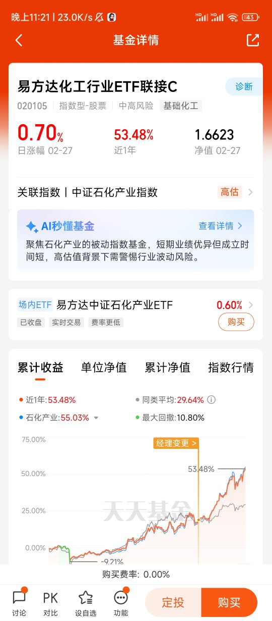 马年开工,节后布局我最看好的赛道就是化工。很多人觉得化工传统、不性感,但在我看来,它恰恰是2026年最稳、最有爆发力的“低调王牌”,我也重点配置了易方达化工行业ETF联接C(013638)。