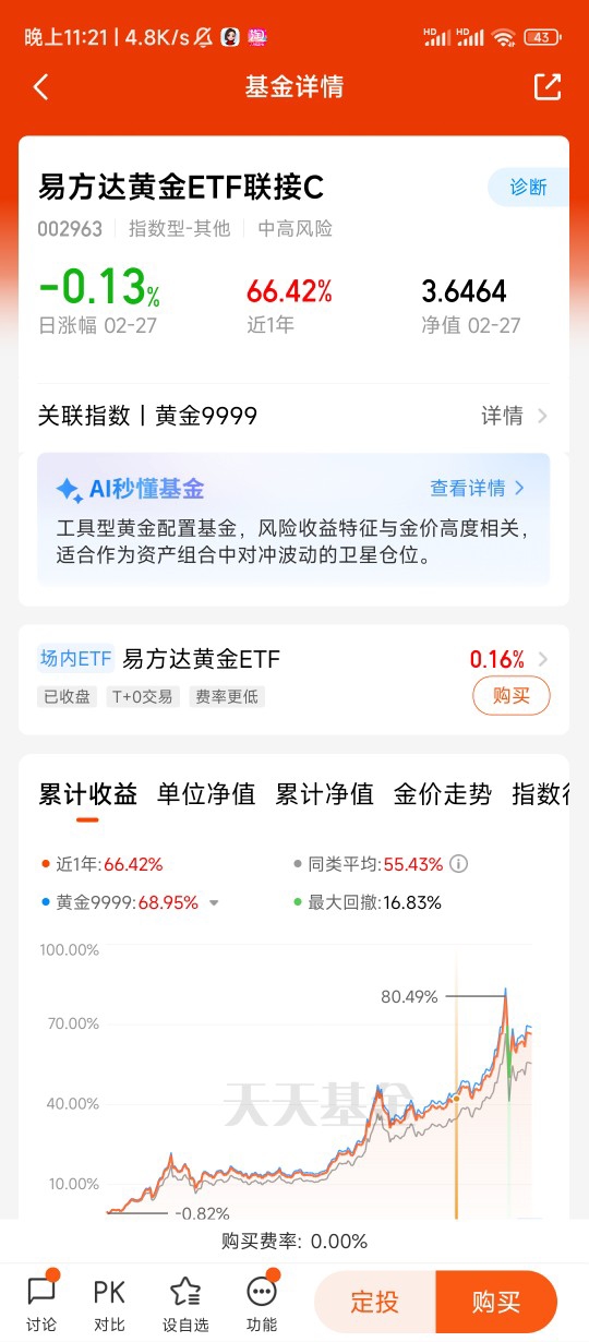 再说说易方达化工行业ETF联接C。这只基金跟踪中证细分化工产业主题指数,覆盖化工全产业链,从上游的石油、化肥,到中游的化纤、塑料,再到下游的精细化工、新材料,一网打尽。重仓的都是万华化学、荣盛石化、华鲁恒升这些行业龙头,质地好、竞争力强,长期业绩靠谱。作为联接基金,C类费率低,持有超过7天就免赎回费,适合波段操作也适合长期持有,对普通投资者特别友好。
