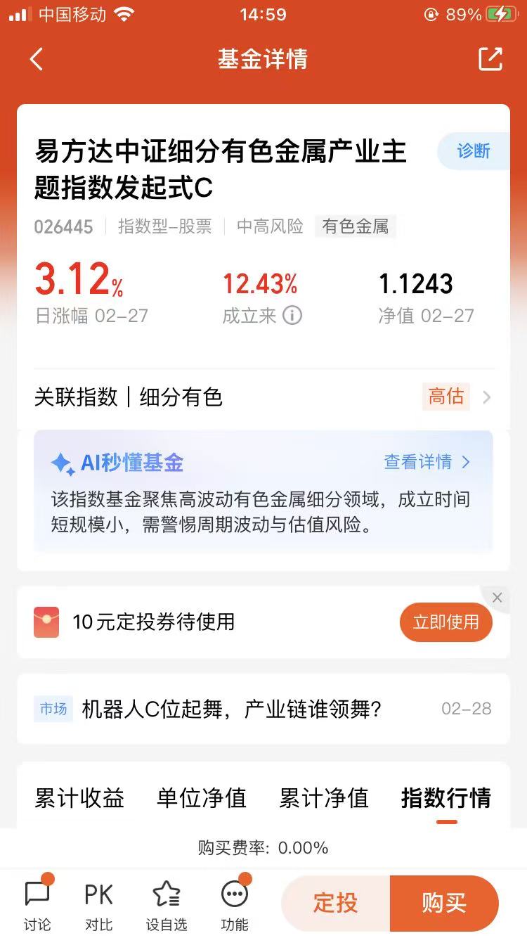 $易方达中证细分有色金属产业主题指数发起式C(OTCFUND|026445)$