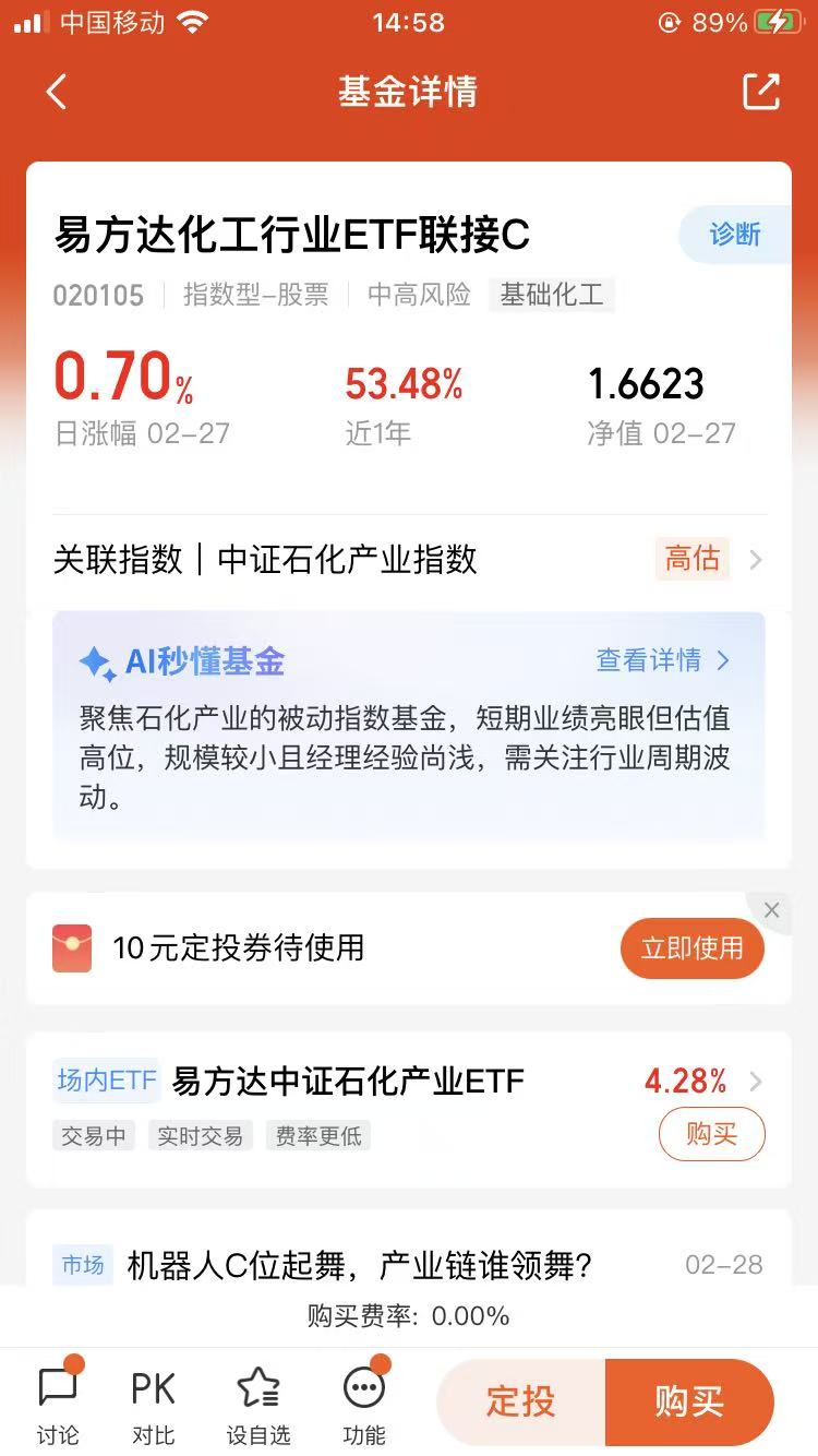 $易方达化工行业ETF联接C(OTCFUND|020105)$
