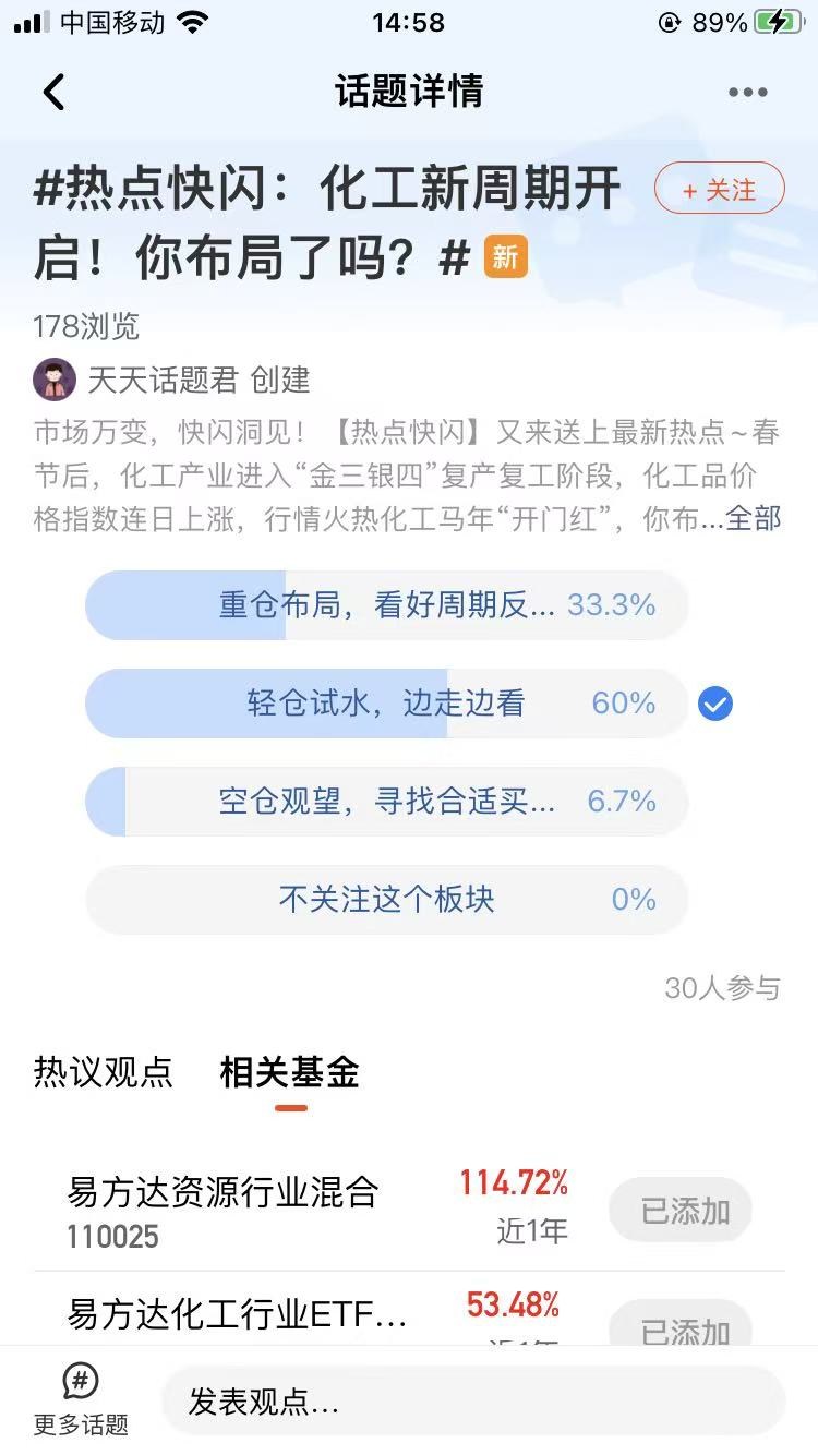 我在#热点快闪:化工新周期开启!你布局了吗?#选择了“轻仓试水,边走边看” ,作为一名普通投资者,我既没有专业机构的调研能力,也没有足够的资金扛住大幅波动,选择“清仓试水,边走边看”,核心就是不盲目、不踏空,既想抓住可能的机会,又怕亏得太惨,主打一个稳健试探,完全贴合我们普通人的投资心态——不求大赚,但求不亏,谨慎为先。