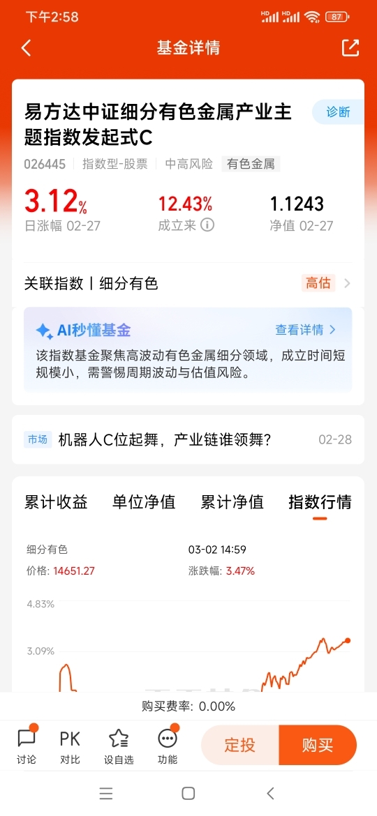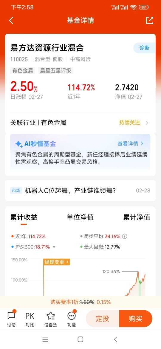 作为追求稳健的普通投资者,我没有选择满仓入场,而是打算轻仓试水,既能跟上化工周期复苏的节奏,也能有效控制波动风险。这款产品的C类份额费率友好、操作灵活,更适合中期布局。@易方达基金