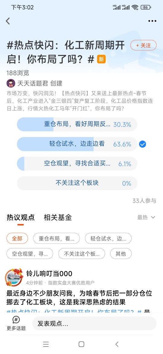我选择轻仓试水,边走边看。平时虽然工作忙,但也感觉到了化工板块的周期复苏信号,我