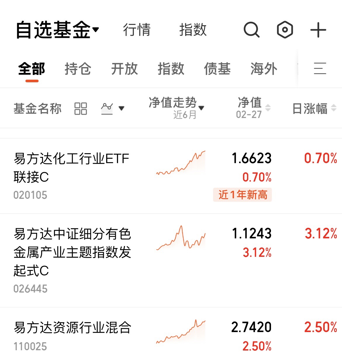 代表作如易方达化工行业ETF 联接C基金,近一年收益率53.48%,同期最大回撤10.48%,持仓个股包括今天涨停的中石油、中石化、中海油等,