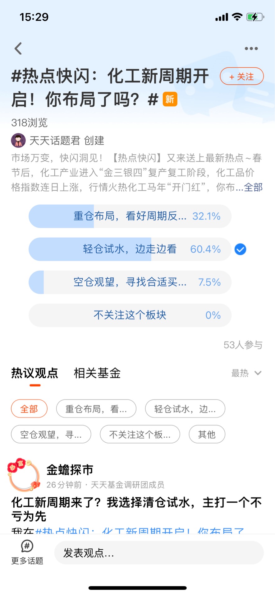 我自己打算先建个底仓,后面根据油价走势和板块轮动情况再决定是否加码。化工这种周期板块,启动的时候往往比较快,但持续性要看需求端能不能跟上,所以边走边看是最舒服的姿势。用联接C类份额还有个好处,申购赎回比较灵活,短期交易成本相对友好,适合我这种想参与但又不想把仓位锁死的投资者。@易方达基金