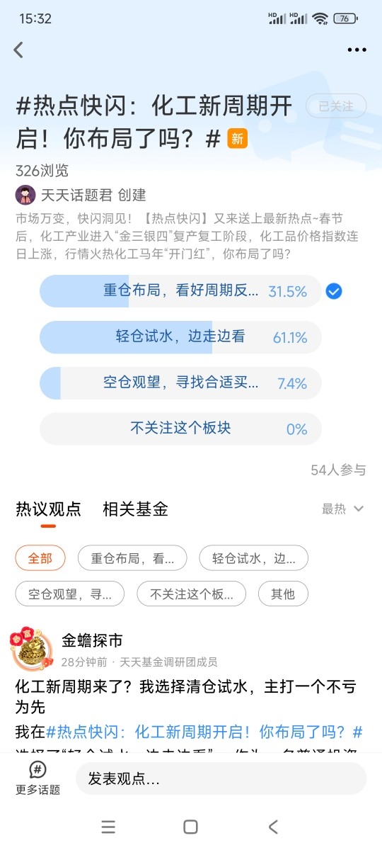 #热点快闪:化工新周期开启!你布局了吗?# 我在#热点快闪:化工新周期开启!你布局了吗?# 选择了“重仓布局,看好周期反转”,做投资都懂一句话:需求是油门,现金流就是油箱。油门踩得再猛,油箱没油也跑不远。现在化工板块最让人放心的就是,油箱正在被重新加满。