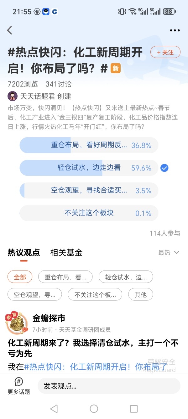 我在#热点快闪:化工新周期开启!你布局了吗?# 选择了“轻仓试水,边走边看”