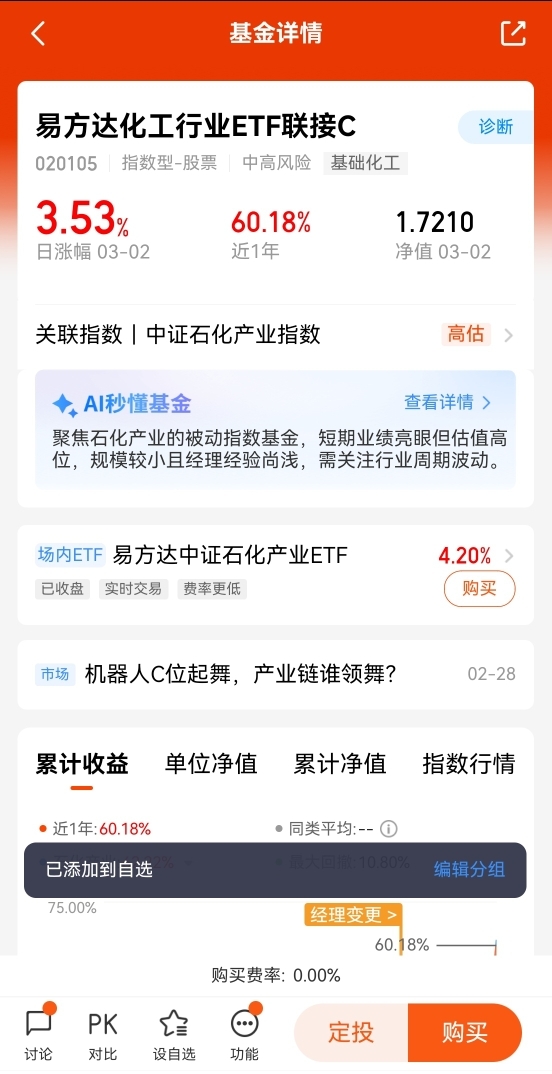 我在选择了“轻仓试水,边走边看”。$易方达化工行业ETF联接C$2026年化工行